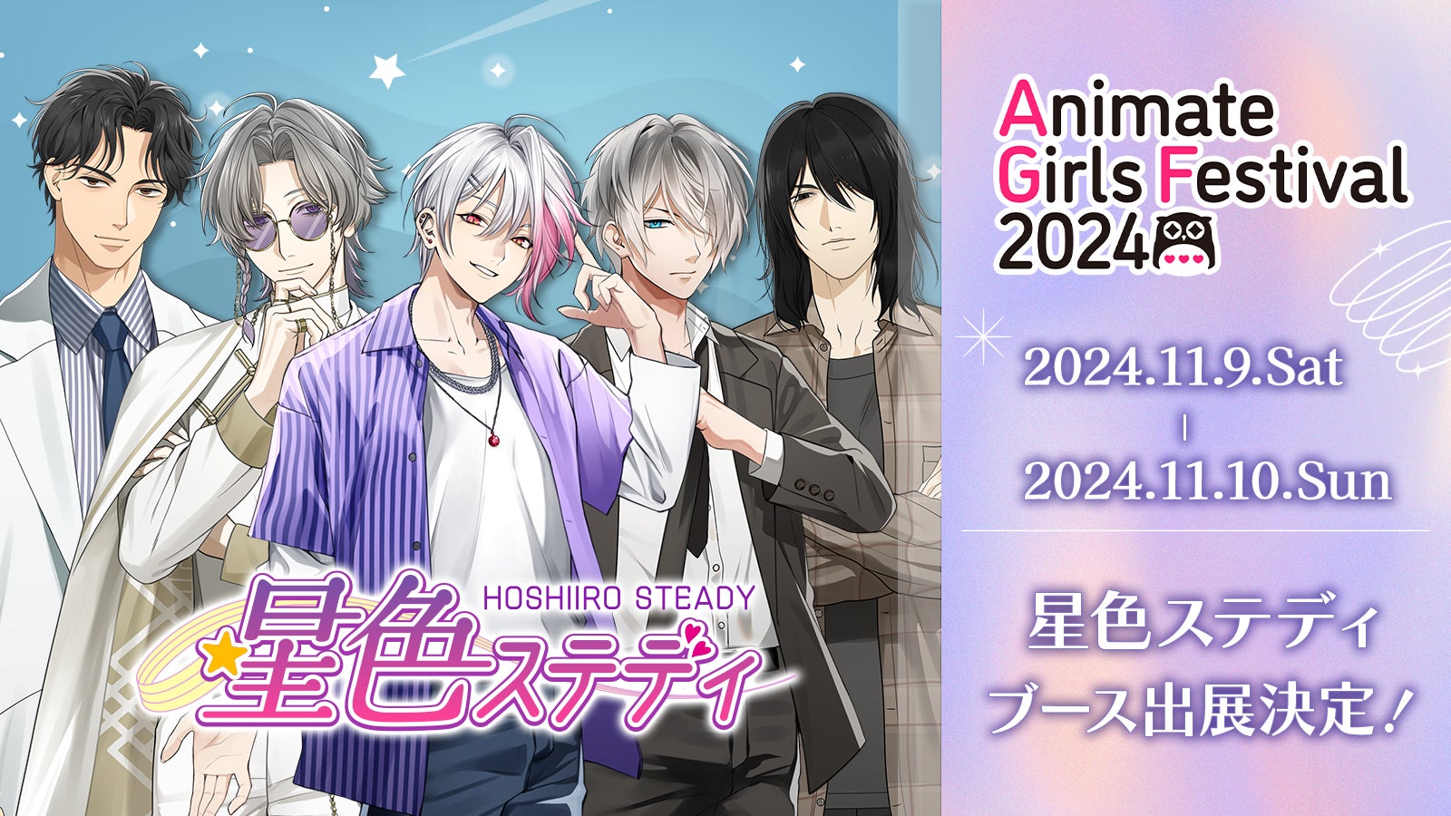 株式会社リプラグが運営するリアルチャット型恋愛シミュレーションゲーム「星色ステディ」は、2024年11月に開催される大型イベント『アニメイトガールズフェスティバル2024』に出展することを発表しました