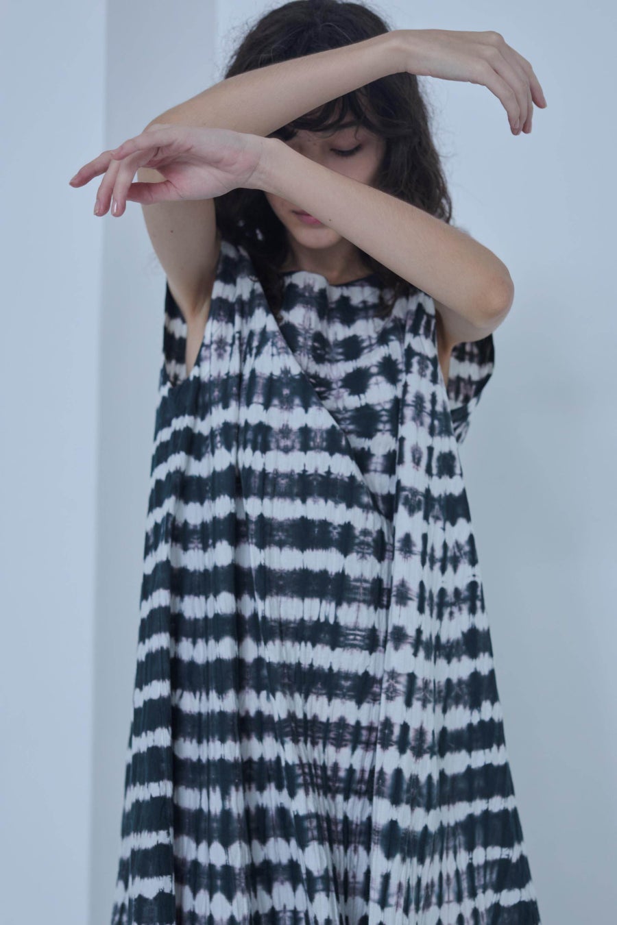 ARIMATSU SHIBORI WAVE ワンピース ¥93,500/パンツ ¥83,600 カラー:ブルー、チャコールグレー