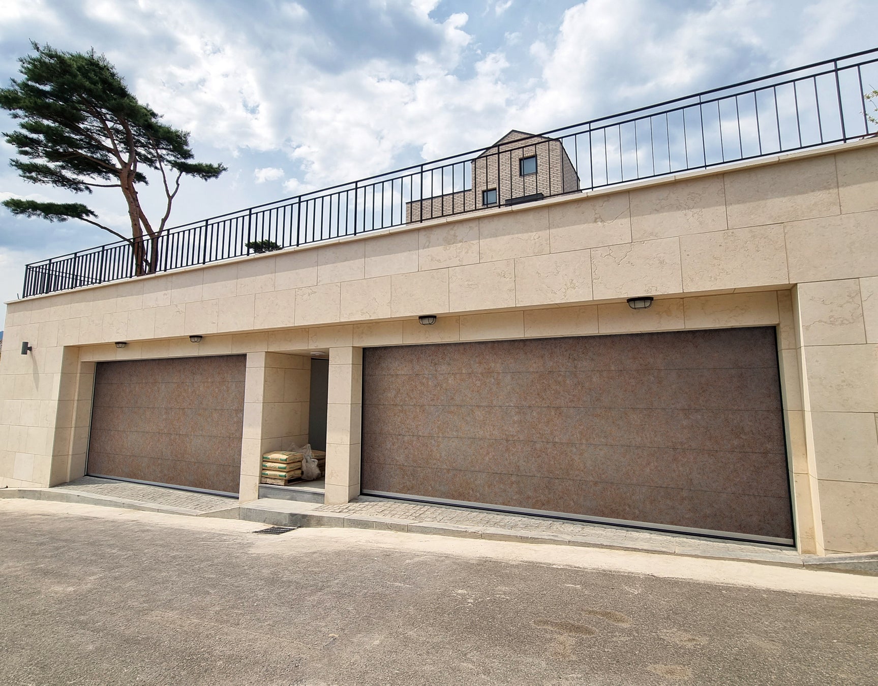 エグゼクティブモデルとして新登場した「マーブルストーン」は、アンティーク調の特別な表面処理を施したデザインが特徴で、ガレージ空間に個性を引き立てつつ高級感あふれる外観を演出します。