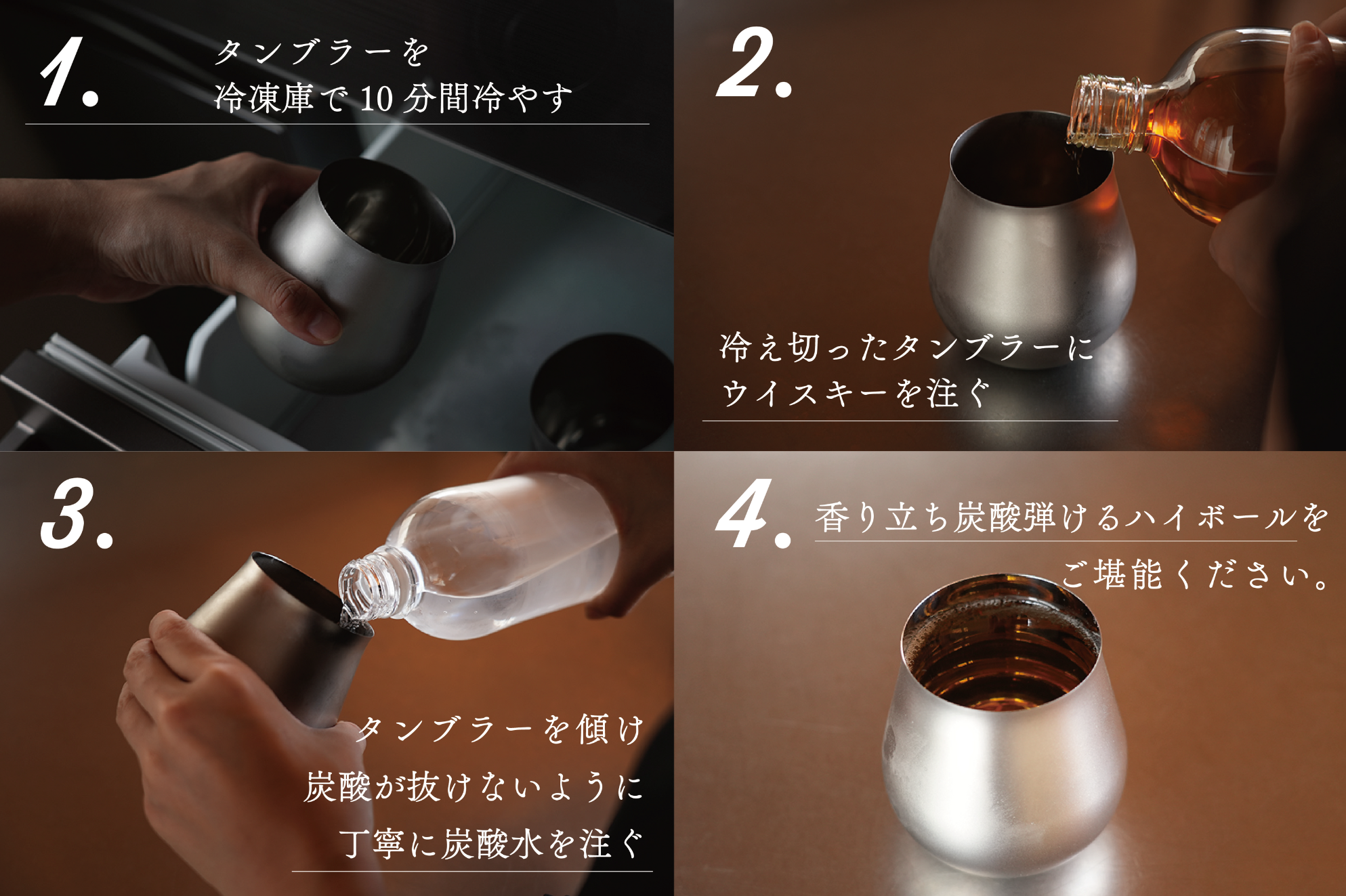 こだわりのウイスキーを飲むとき、ひと手間を加えるだけで、別次元のハイボールになるとしたら。そのハイボールを飲んで、贅沢な時間を過ごしてほしい。そんな想いから開発された新しい概念のハイボールタンブラーです。