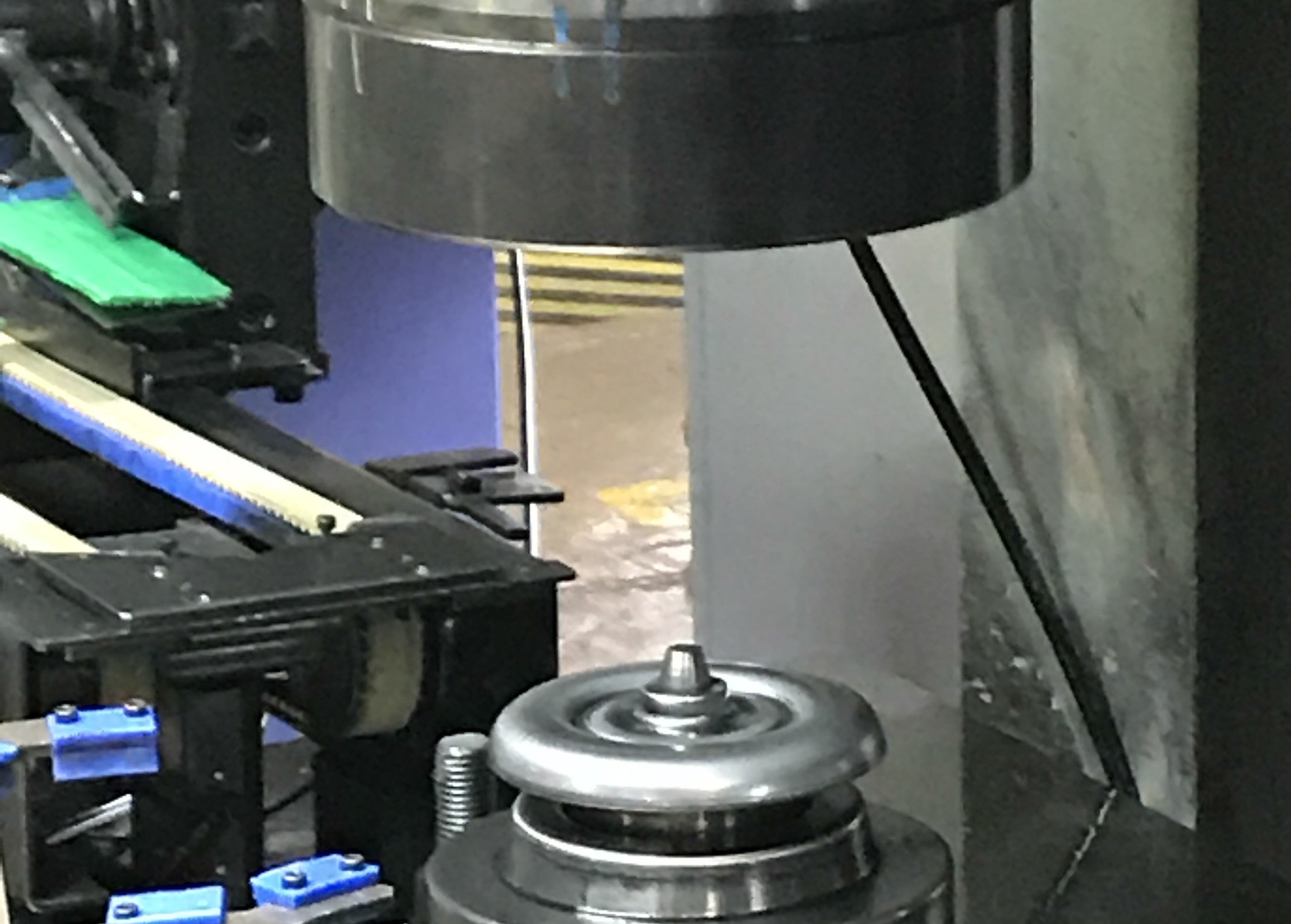 自動車部品の製造において、「回転する製品は回転させてつくる方が良い」というシンプルな発想から生まれた工法。まずは板をカップ状にし、回転させながら転造ローラーを当てることで、自由度の高い形状に成形可能なカネミツ独自の技術で、素材板厚の1/4まで減肉が可能。