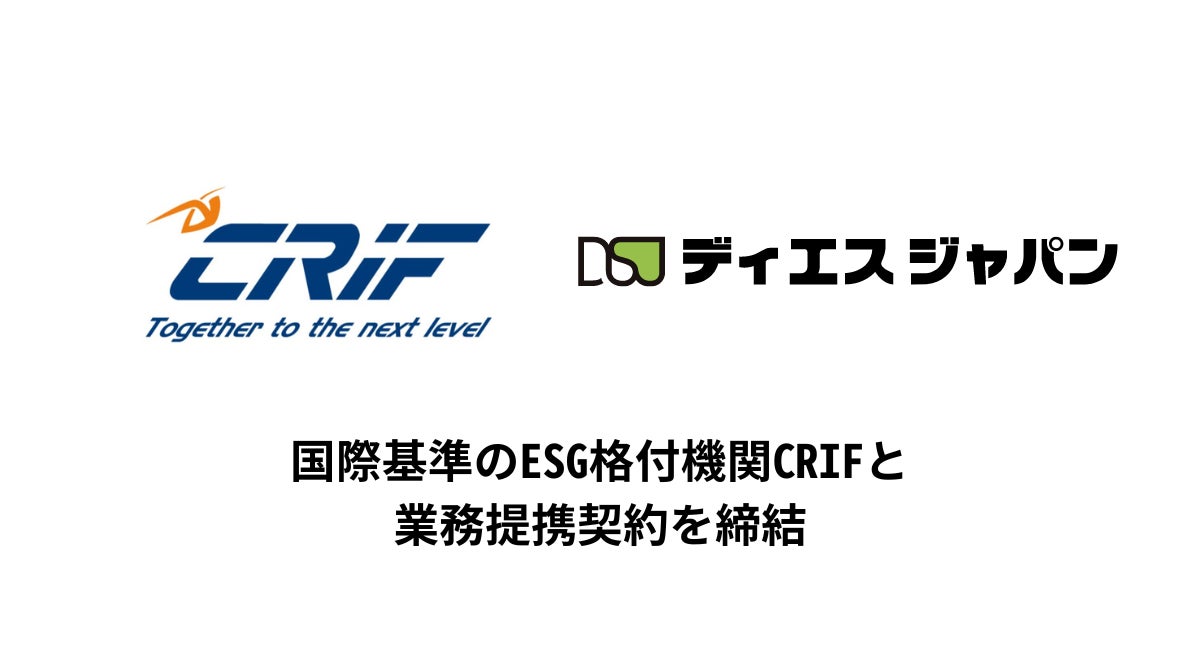 株式会社ディエスジャパン(本社:大阪府東大阪市、代表取締役社長:北條陽子 以下「ディエスジャパン」)は、このたび世界40カ国以上で国際基準のESG評価サービスを展開するCRIF S.p.A(本社:イタリア ボローニャ、会長兼CEO:カルロ・ゲラルディ)の日本法人CRIF Japan株式会社(本社:東京都千代田区、代表取締役:ビンチェンツォ・レスタ、以下「CRIF」)と業務提携したことをお知らせいたします。