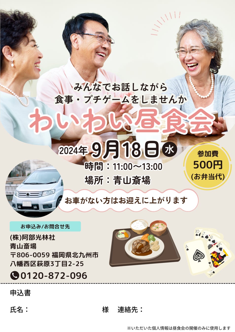 これらの社会背景と遺族の声を踏まえ、(株)阿部光林社で昼食会を定期的に開催して以下の目的を目指しています。