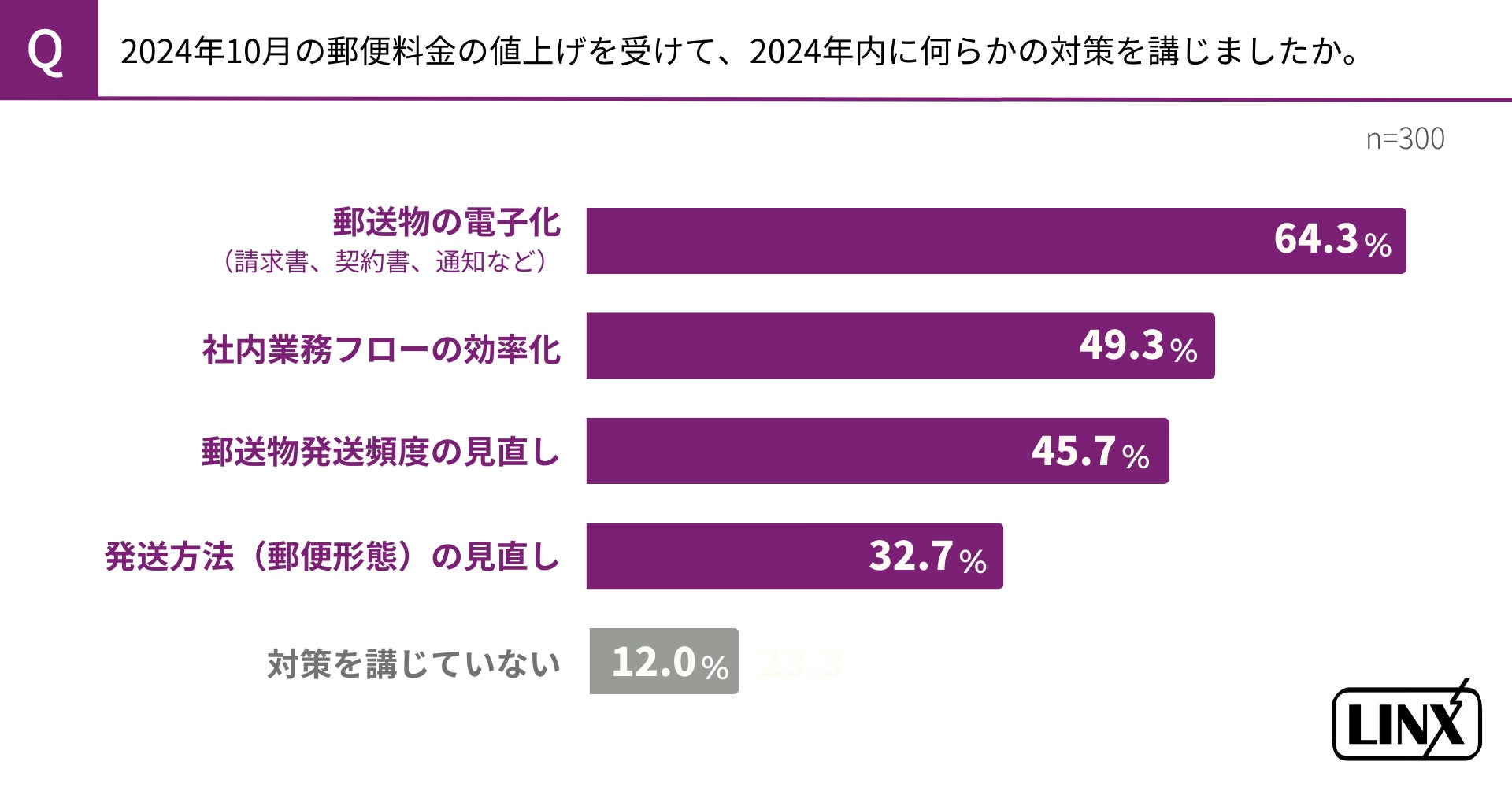 ・2024年10月の郵便料金値上げ対策、約6割が「郵送物の電子化」を実施