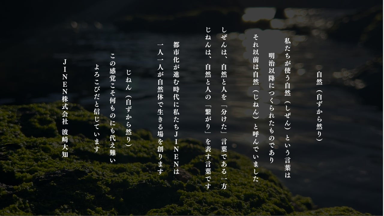 会社名の「JINEN」は、「自然(じねん)」という言葉に由来しています。