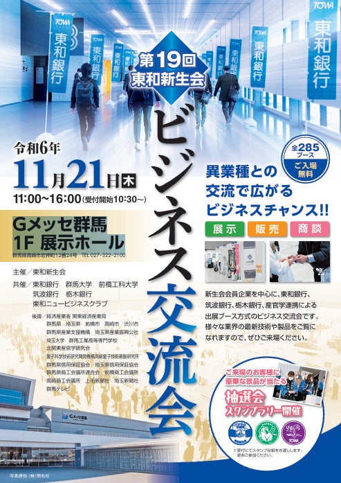 第19回東和新生会「ビジネス交流会」を今年も来る11月21日(木)に、「Gメッセ群馬」にて開催いたします。