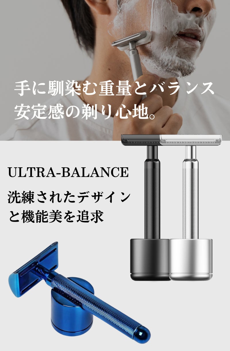 熟練者から初心者まで扱いやすい「Ultra-Balance Razor」と「Premium Metal Razor」の2種類をご用意。それぞれ8色と3色の豊富なカラーバリエーションの中からお好みに合わせて選べます。