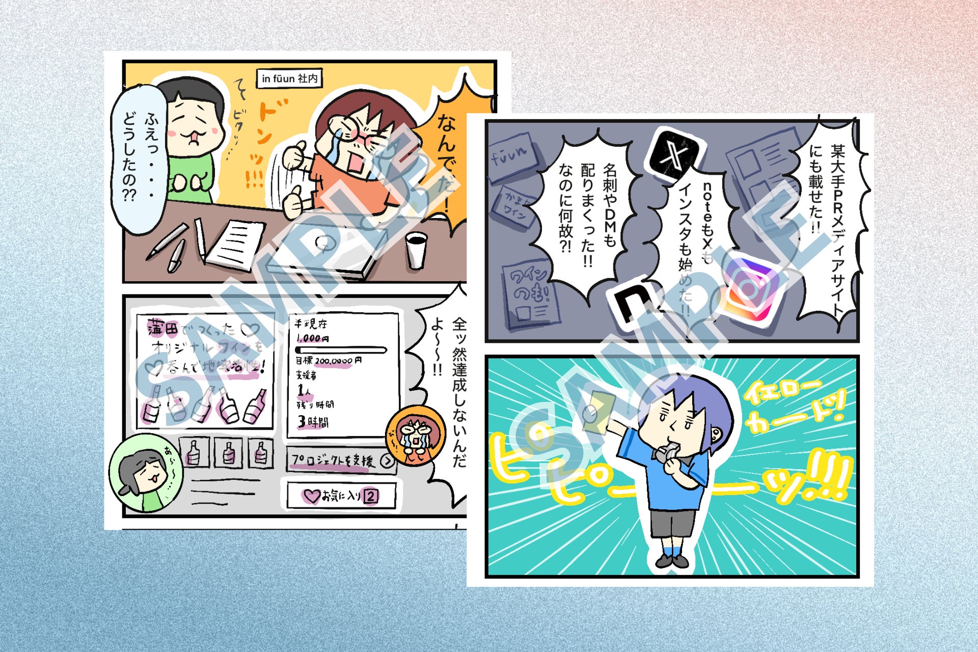 fūunのメンバーが、クスッと笑えるユルめの4コマを通じ、あなたのサービスや商品を紹介します。納品したマンガは、ぜひ貴社の広報活動にご活用ください。