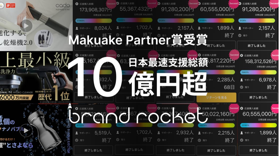 新規ブランドのローンチから軌道に乗せるまでのサポートに特化した専門集団、株式会社ブランドロケット(本社:東京都目黒区、代表:道端孝助、以下:ブランドロケット)は、サポートしたブランドや新商品の総支援ローンチ額が、創業、事業開始1.5年(2023年6月1日~2024年10月末日時点)で10億円以上を達成、また国内最大級のクラウドファンディング「Makuake」が発表する「Makuake Award 2024」において「パートナー賞」を受賞したことをお知らせいたします。