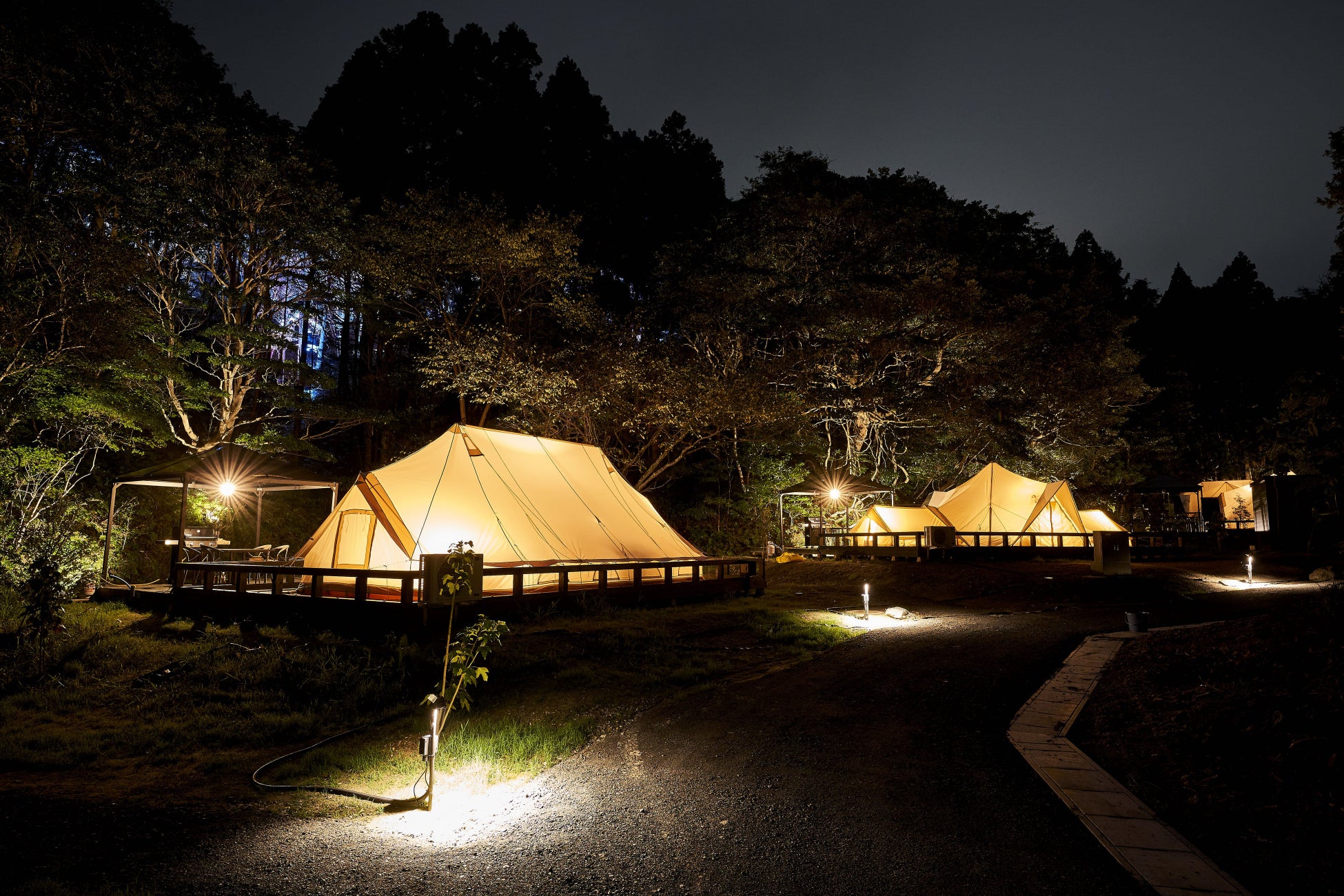 五浦 幽谷隠田跡温泉は、株式会社創輝(本社:茨城県北茨城市中郷町、代表取締役:沼尻良雄・酒井喜則)が展開するグランピング施設で、チームラボのアートに没入し、湧き出る温泉に浸かり、北茨城の海の幸を食べ、森に泊まる。その森が持つ力で、棚田跡の湿地や、グランピングの敷地がもとの姿に戻っていく過程を、楽しみながら自然の中で宿泊するグランピング体験です。
