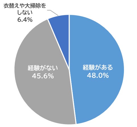 年末の大掃除や衣替えのタイミングで収納した布団やクローゼットの衣服からカビの臭いがしたり、カビを発見した経験について聞いたところ、「カビが生えていた、発見した」という経験がある方は 約5割にのぼりました。