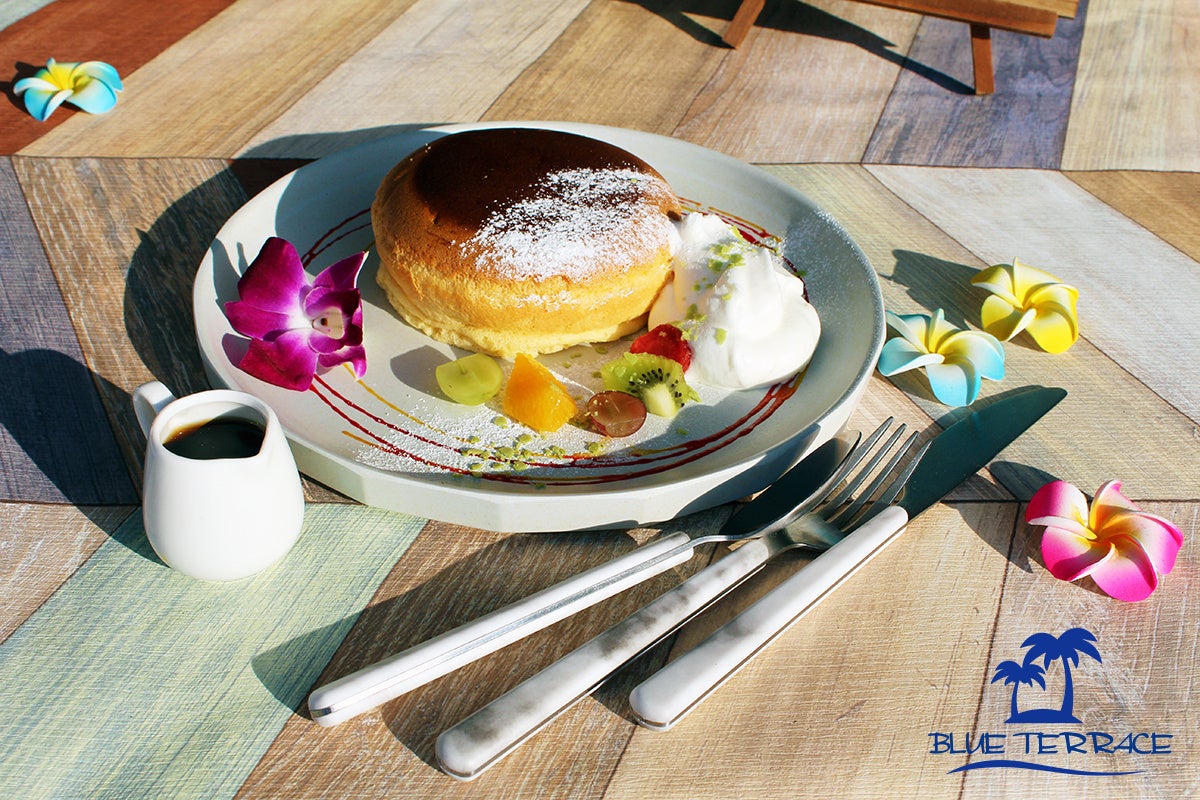 併設するカフェ「ブルーテラス ハワイアンスタイル」では、ハワイアン料理やスイーツ等も取り揃えておりますので、お越し頂いた皆様のお好みでお好きなものを食べて頂くのも良し、牡蠣小屋の後はご家族でゆったりとカフェでお寛ぎ頂くのも良し、店舗が連携して冬の二色の浜を1日満喫頂ける環境でお待ち致しております。