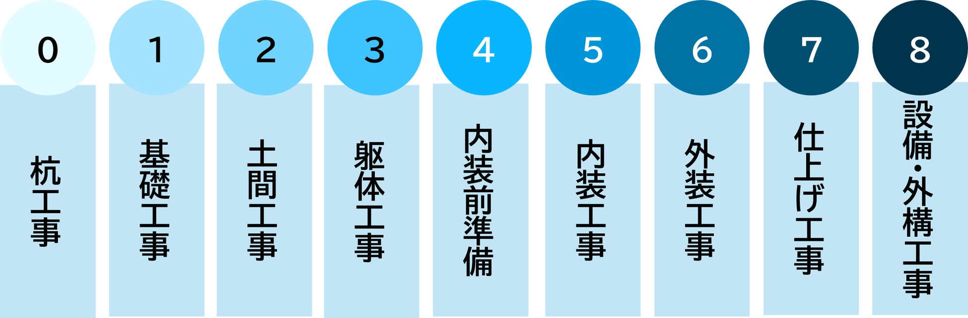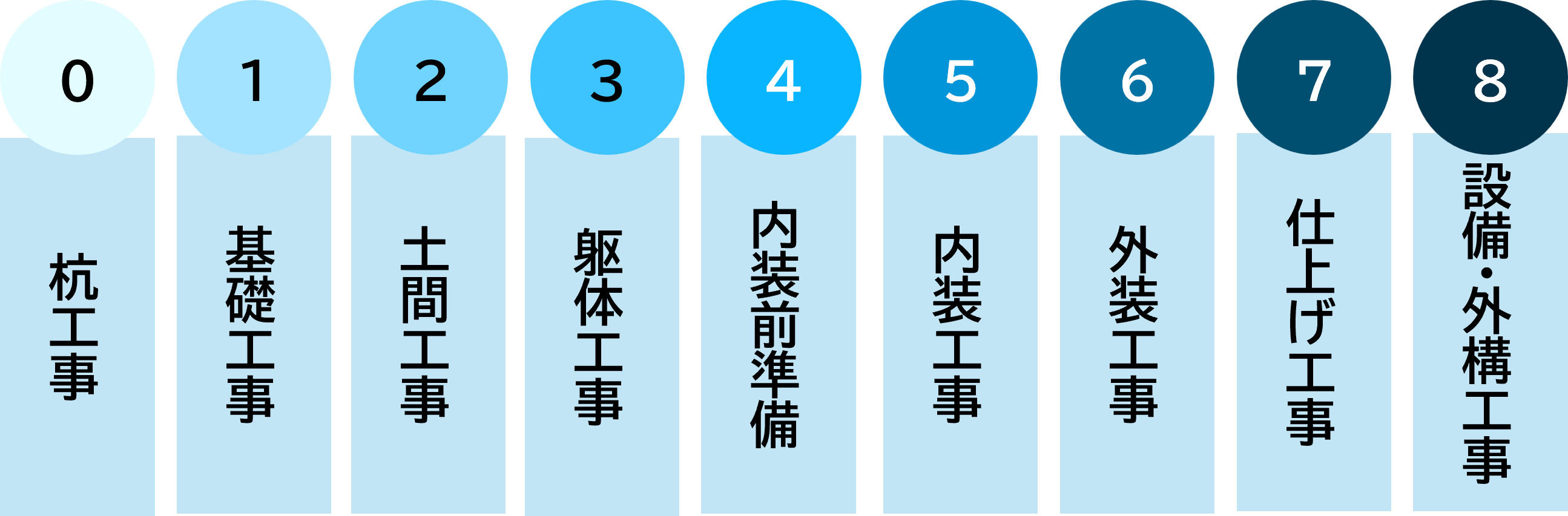 進和建設では、RCマンションの建設工程を9つに分解して、管理しています。