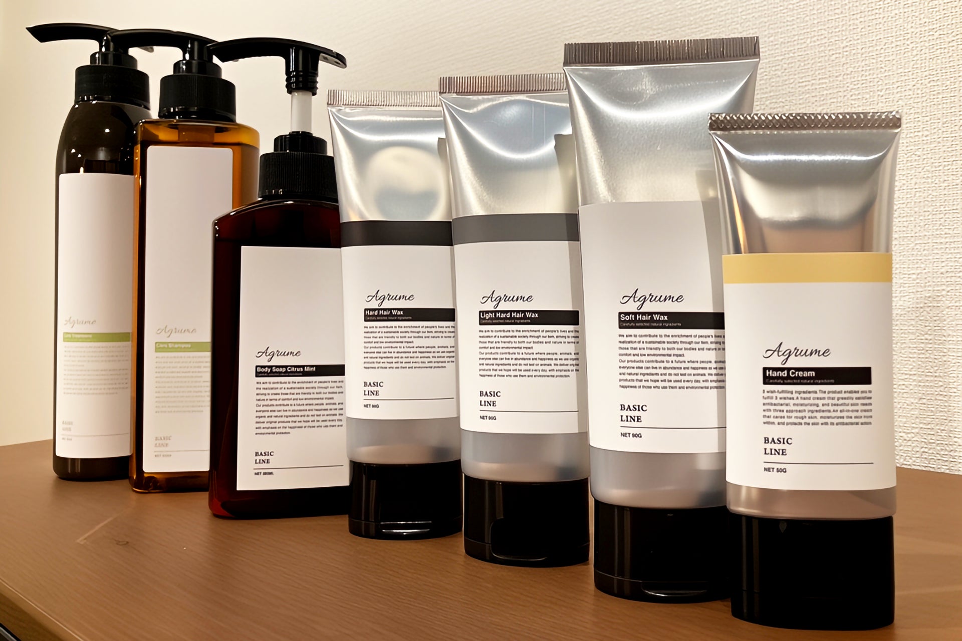 また、株式会社Grandeur(グランダァ)オリジナルブランドである『Agrume(アグリュム)』のシャンプー、トリートメント、ボディソープ、ワックスもお取り扱いいたします。「細部まで理想の自分を実現する」というお客様に寄り添いたいという思いから生まれた『Agrume』は、天然由来成分や植物のオイルを使用したアイテムをご提供しております。