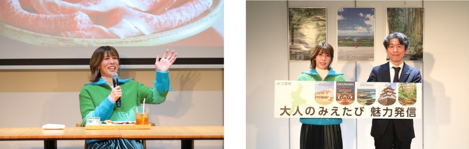 三重県津市出身の吉田沙保里さん「おとなのみえ旅」魅力発信に登壇 伊勢えびや伊賀牛などの絶品グルメの食レポに挑戦