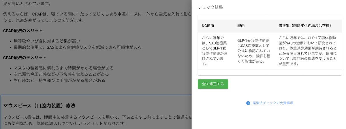 【ワンクリックで簡単チェック】薬機法&医療広告ガイドラインチェックAI