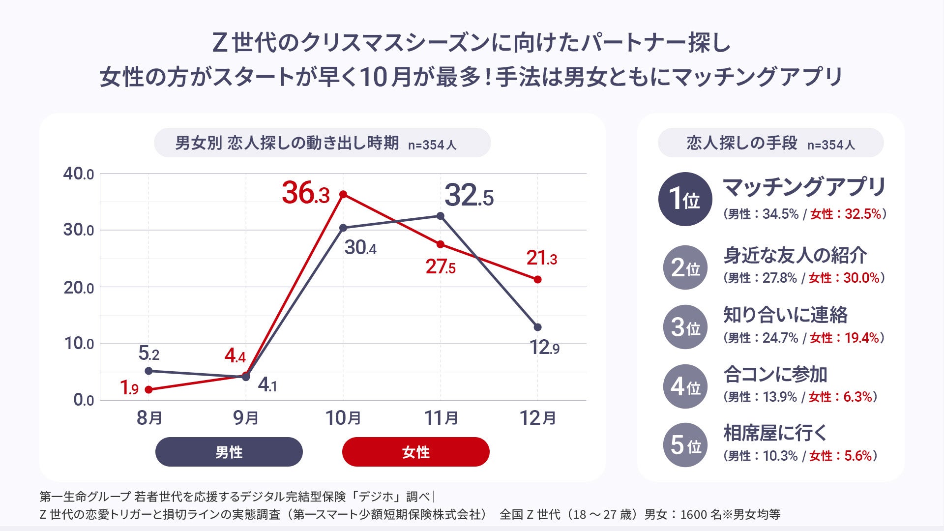 クリスマスに向けたパートナー探しは、“マッチングアプリで11月”から。女性の動き出しが若干早め。