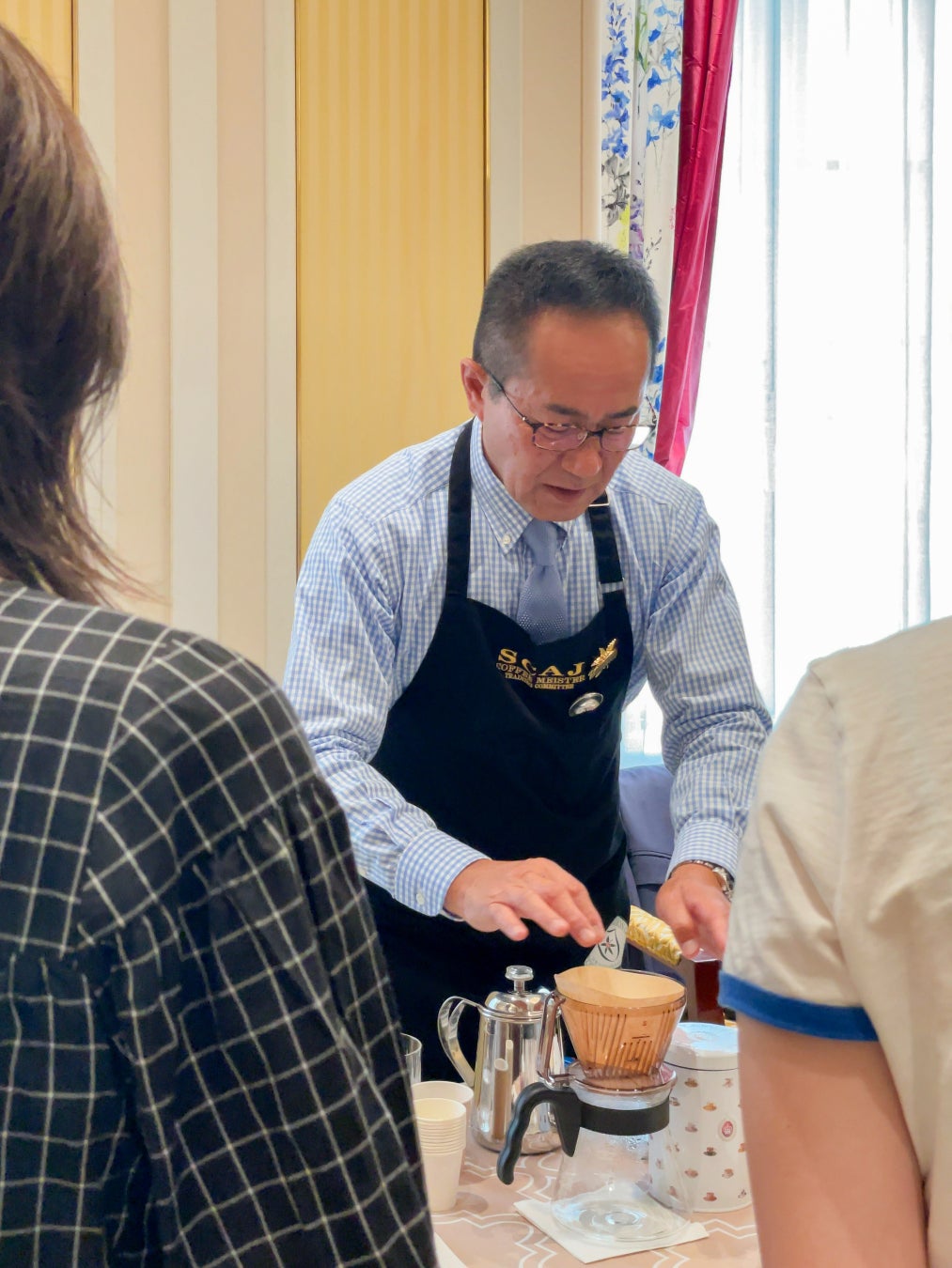世の中には珈琲教室は多く存在します。どうせやるのであればお客様に最高の満足感を味わって頂きたい。そのためには最高の講師から、楽しく優雅に学んでいただく、特別な珈琲教室にしたい。そんな想いから業界屈指の知識を持つ菅野氏に依頼。