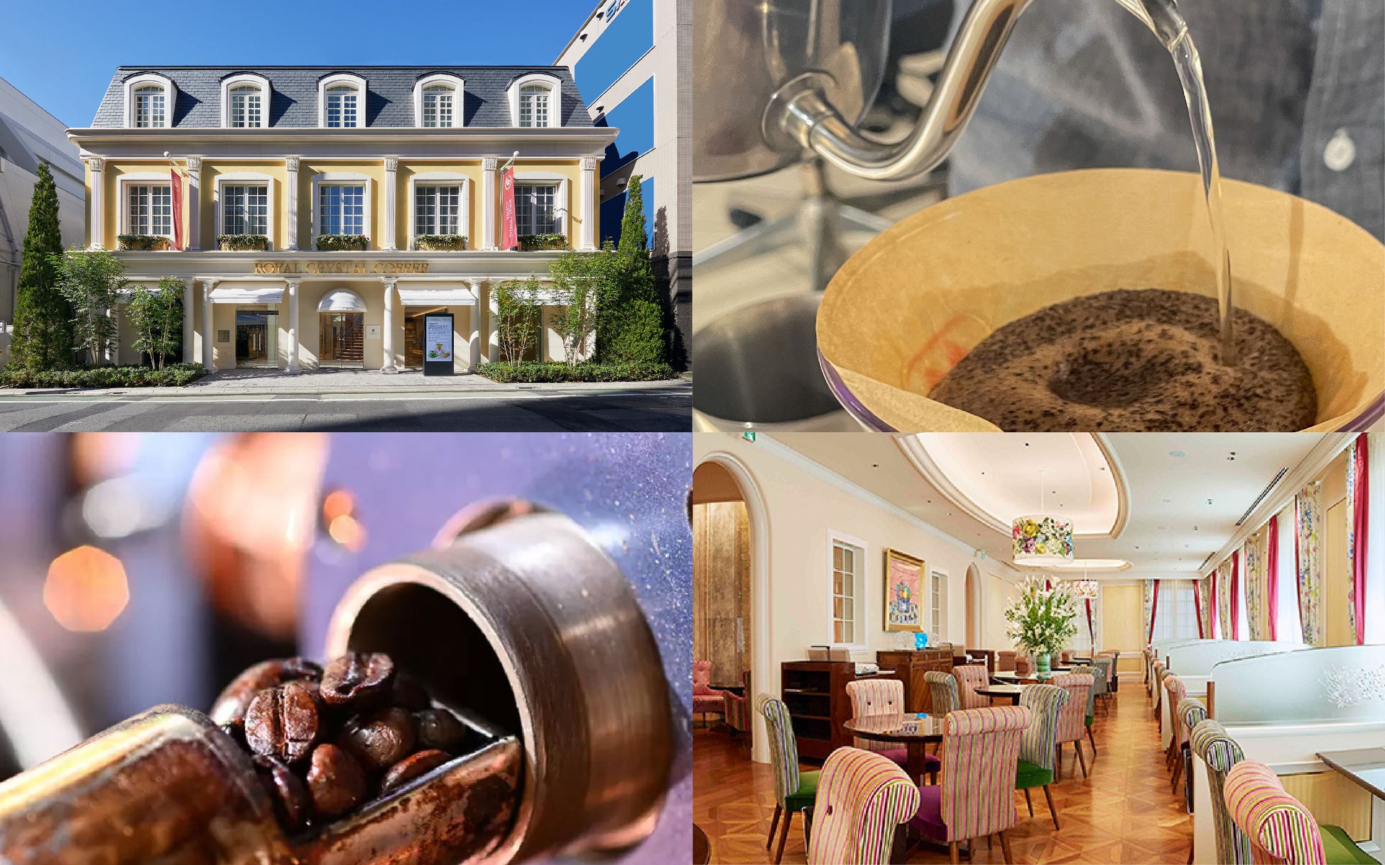 ROYAL CRYSTAL COFFEE(ロイヤルクリスタルコーヒー)は、1階でコーヒー生豆の熟成・焙煎・パッキング・販売までの全工程を担っております。2階カフェでは、優雅な店内でアフタヌーンティーをゆったりとお楽しみいただける珈琲の複合施設となっております。