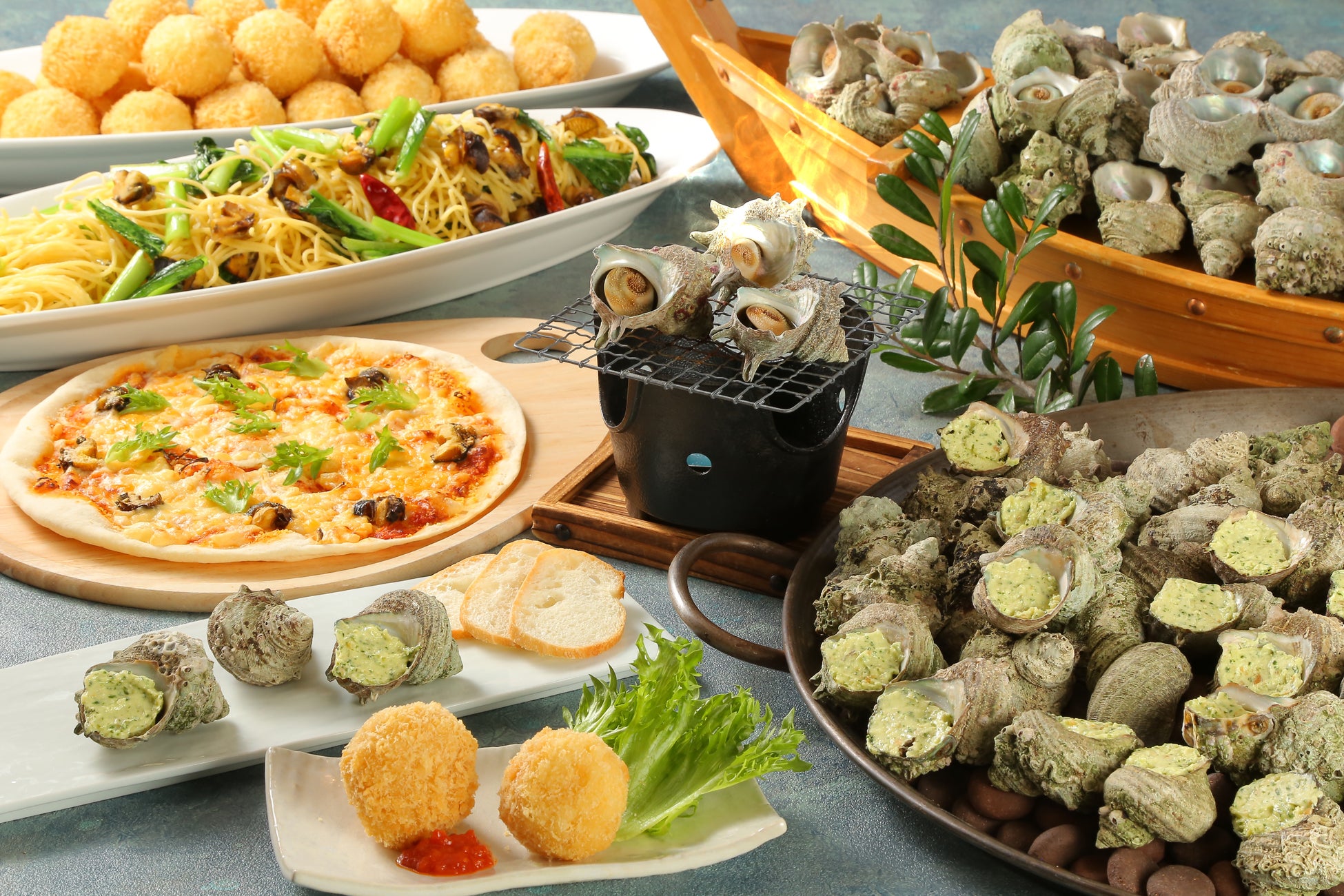 ・サザエの壺焼き ・サザエのアランチーノ(ライスコロッケ)