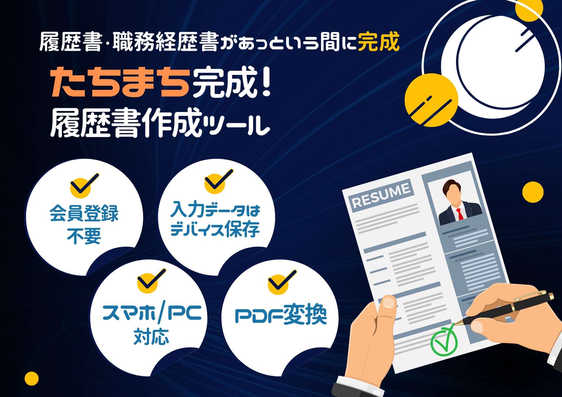 会員登録不要!「たちまち完成!履歴書作成ツール」の提供開始