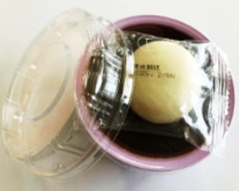 おしるこには、国内産水稲もち米を使用した杵つき丸もちが1個付属しています。おもちを袋から取り出し、カップに沈めて、電子レンジで温めるだけ(500W 2分10秒 600W 2分)で、手軽に本格的なもち入りおしるこが完成します。忙しい日でも簡単に美味しいデザートが楽しめる便利さが魅力です。