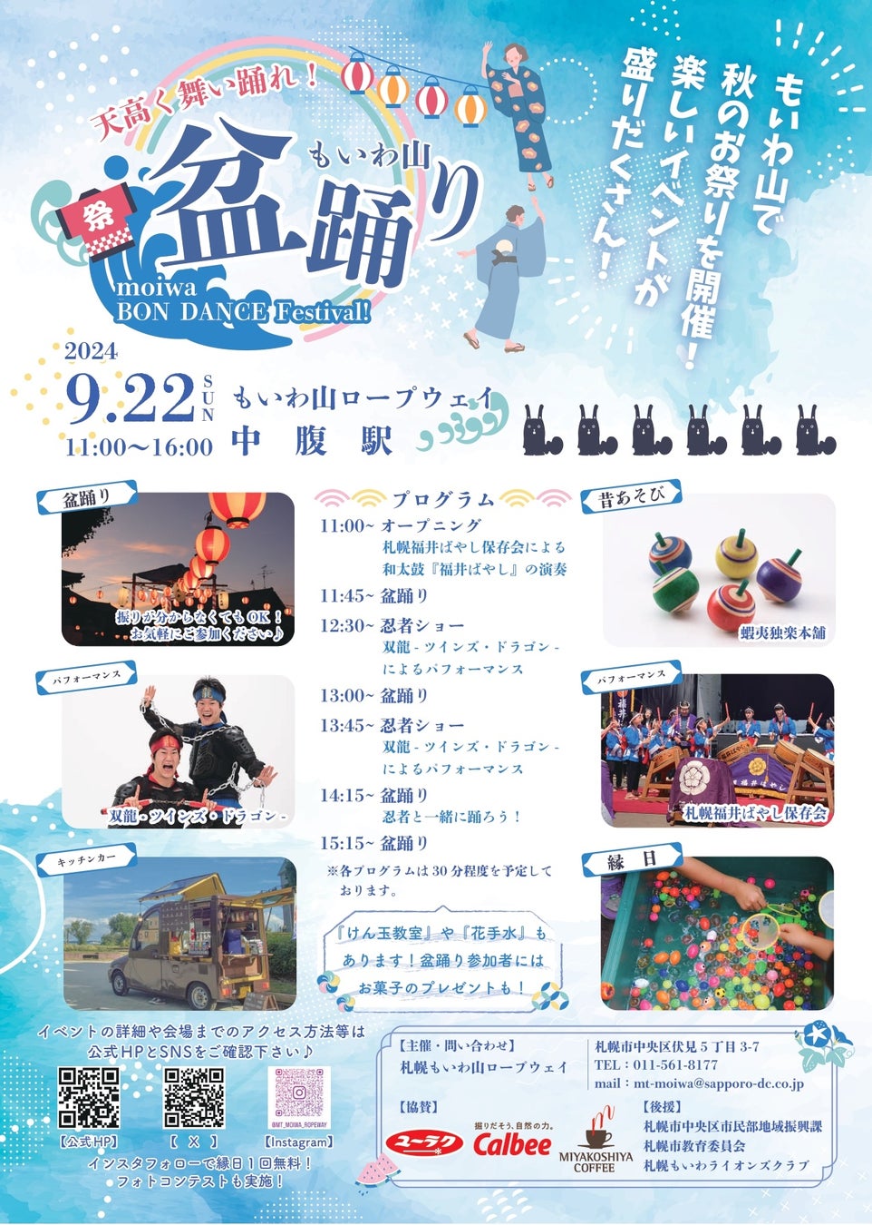 札幌もいわ山ロープウェイでは、9月22日(日)に〝老若男女が笑顔になれる楽しいお祭り〟をコンセプトに『天高く舞い踊れ!もいわ山盆踊り』を初開催いたします。