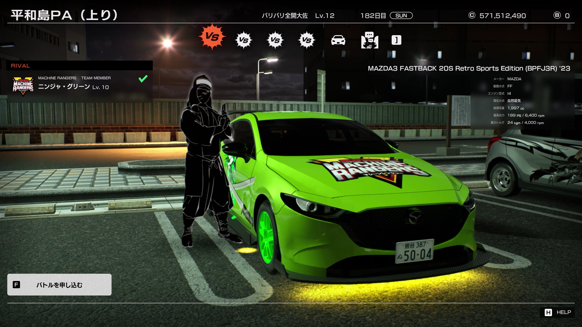 パーキングエリアでは、ライバルの情報を収集したり、ライバルに直接バトルを申し込めたり、車両のセッティングをしたりできます。より詳しい内容については、元気株式会社公式YouTubeチャンネルにて動画を公開しています。