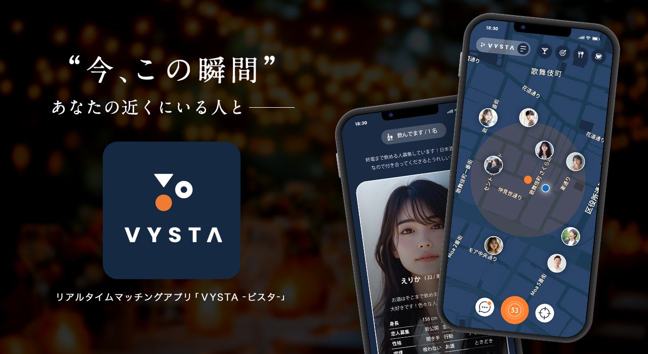 このたび、位置情報型リアルタイムマッチングアプリケーション「VYSTA(ビスタ)」の開発をご報告させていただくとともに、ウェイティングリストの受付開始を発表いたします。
