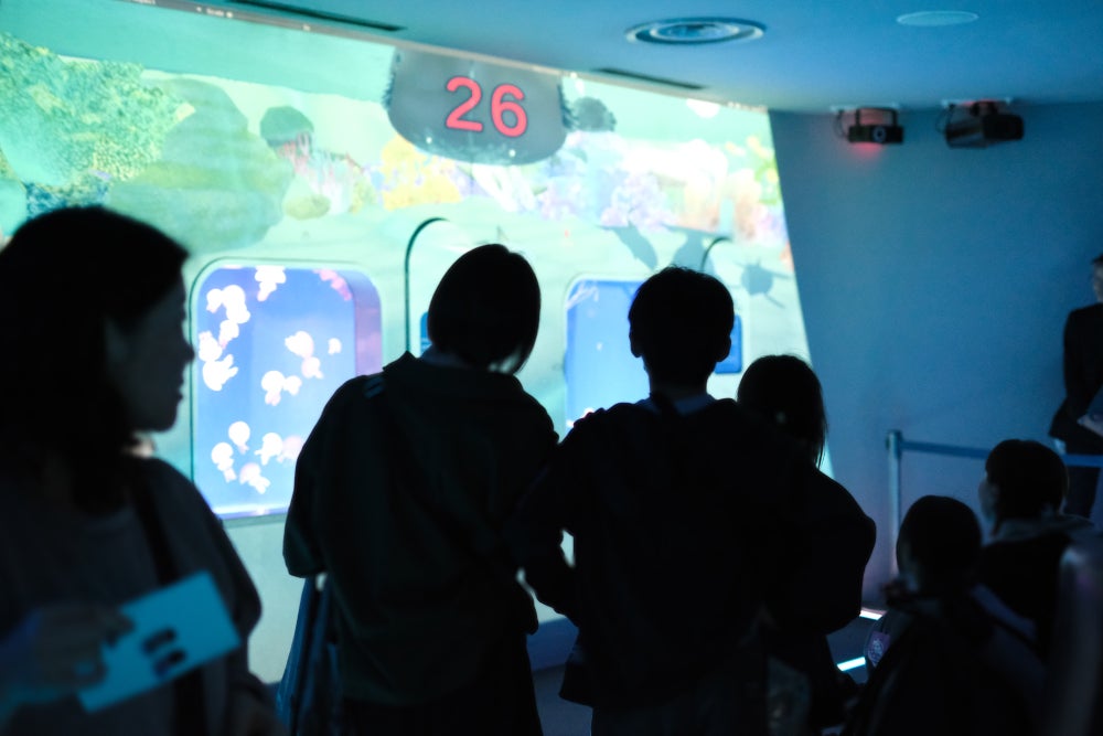 また、湘南工科大学の「横断型先端分野学修プログラム・XRメディアコース」を履修する学生が企画・制作・運営した「デジタル海中ゲーム ハロウィン深海パーティー」も開催されました。最新のデジタル技術を駆使したこのゲームは、海の中のハロウィンをテーマにした楽しい内容で、この日だけの特別な体験を多くの参加者にお楽しみいただきました。