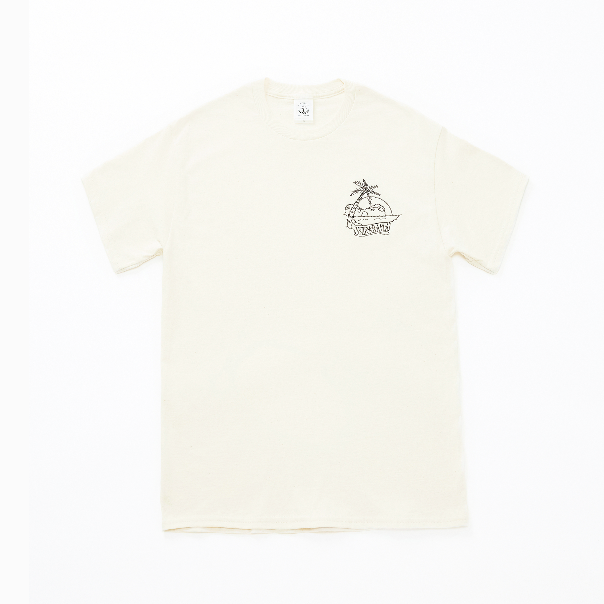 ほどよい張り感とドライな肌触り、丸胴ボディを使用したコットン100%Tシャツに、シンプルなワンポイントの刺繍デザインを施しました。Tシャツはホワイト、ブラック、グレーの3色展開で、サイズはSからXXLまで幅広くご用意しています。