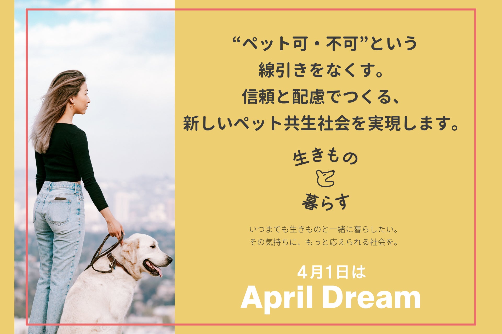 株式会社生きものと暮らす(所在地:東京都世田谷区、代表取締役:永瀬 もなみ、以下:当社)は、将来、“ペット可・不可”という線引きをなくし、信頼と配慮でつくる新しいペット共生社会を実現します。当社は、4月1日を夢を発信する日にしようとするApril Dreamに賛同しています。このプレスリリースは「株式会社生きものと暮らす」の夢です。