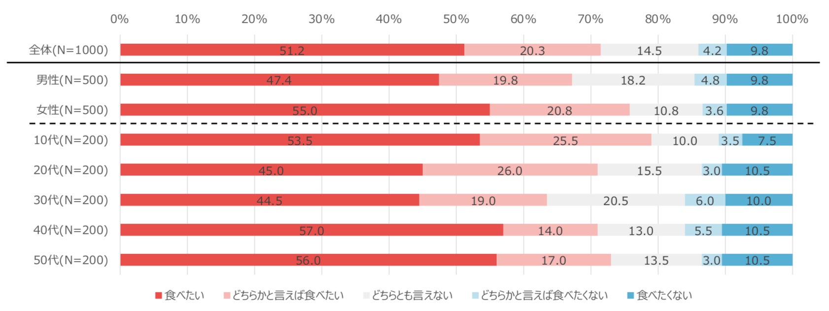 今年の夏にそうめんを食べたい:10代の79%、20代の71%、50代の73%