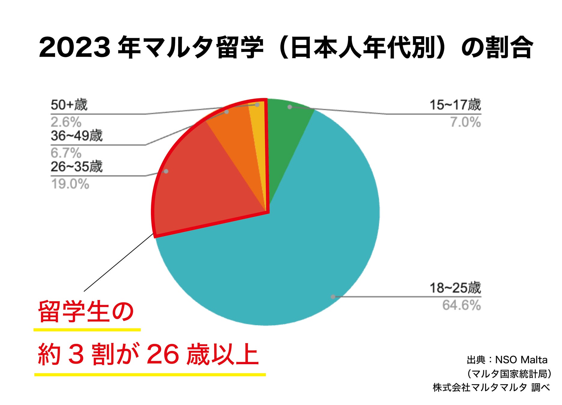 マルタ留学支援の株式会社マルタマルタ(本社:神奈川県横浜市 代表取締役:岩田雅史 以下マルタマルタ)は、当社からマルタ留学をされた方のうち社会人の割合が高まっていることをお知らせいたします。マルタ共和国への日本人留学生全体の中でも約3割が26歳以上となり、社会人留学も浸透しつつあるようです。これまで語学留学といえば学生が中心でしたが、近年の学び直し(リカレント)やワーケーションが身近なものになり、オトナ留学がより浸透しつつあるのではないかと推測しております。