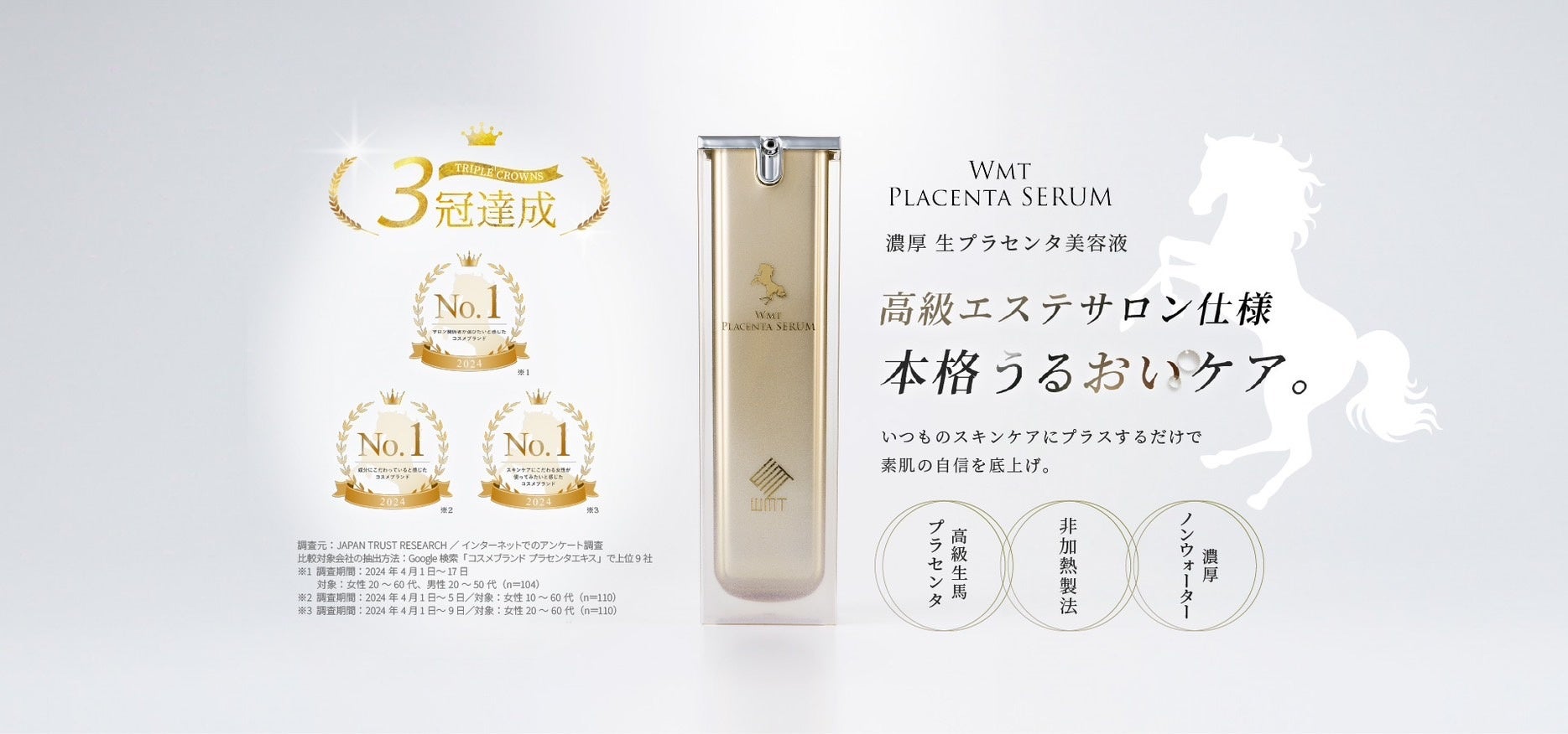 主力商品であるWMT PLACENTA ラインナップでは、北海道産サラブレッドのプラセンタを採用し、抽出方法までにもこだわりぬきました。