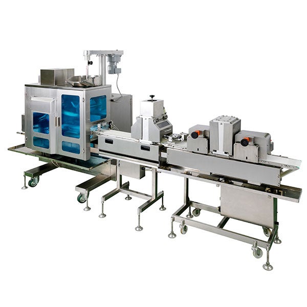 和洋菓子、惣菜、冷凍食品など幅広い製品に対応した多機能包あん機。生産能力は最大14,400個/時で、小規模から大量生産まで柔軟に対応可能。デモ実演あり!