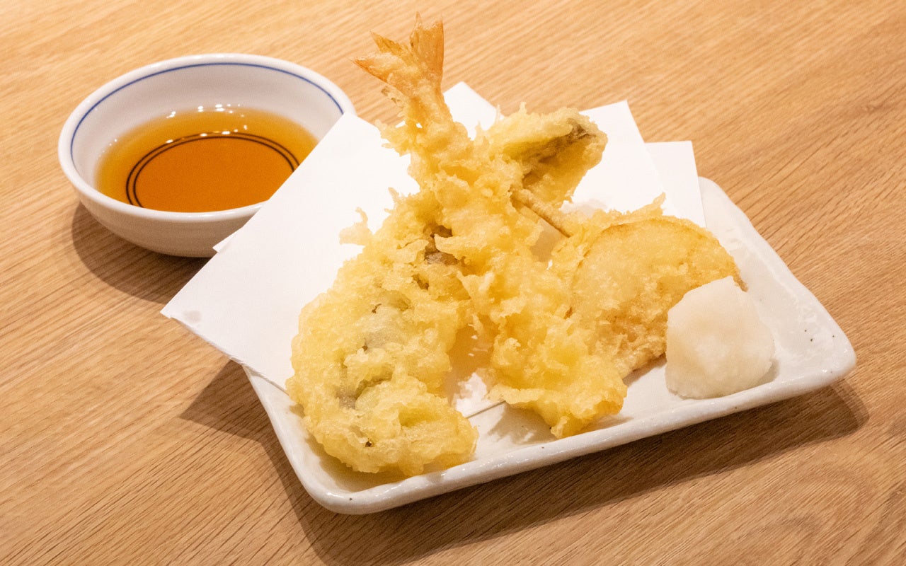 天ぷらはご注文いただいてから揚げるため、揚げたてサクサク。衣が軽いため、脂っこくなくあっさり食べやすいと好評です。