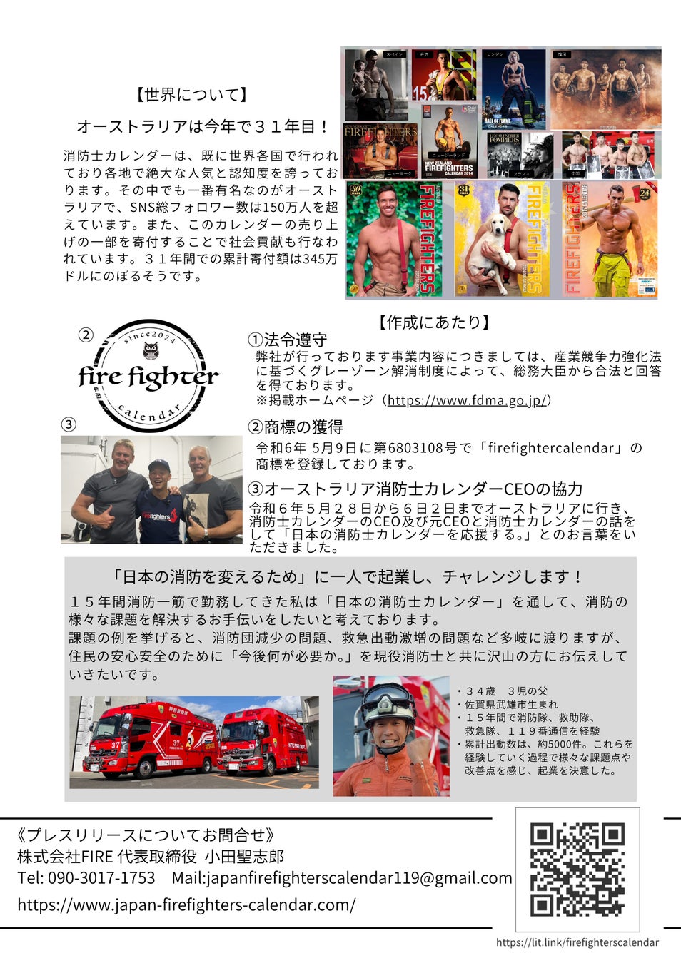 北は北海道、南は沖縄の中から選抜された現役消防士達が一箇所に集まり撮影をする機会は日本史上初だと思われますので、撮影風景や消防士カレンダーに秘められた想いを取材に是非お越しください!