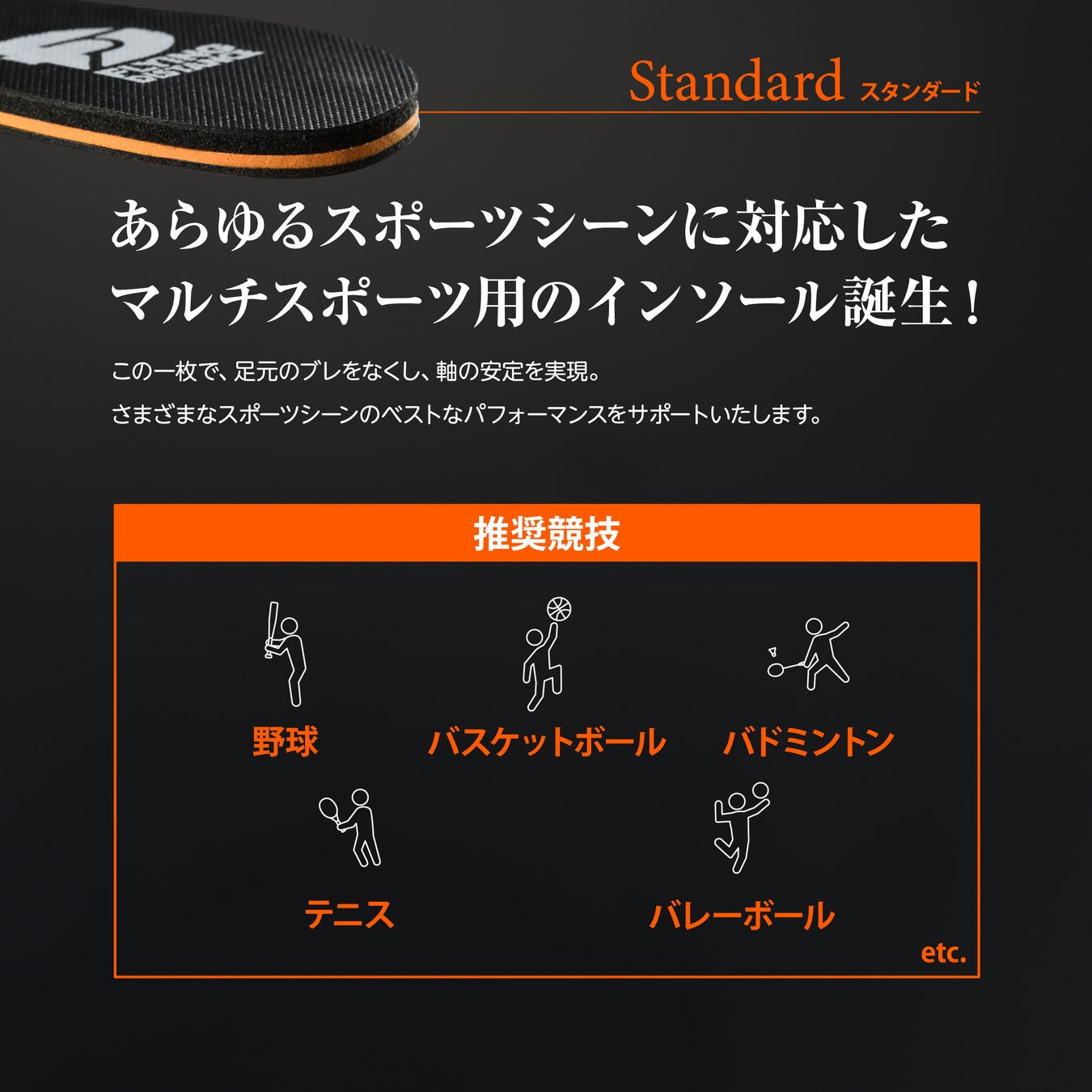 あらゆるスポーツシーン対応したマルチスポーツ用インソールを開発。この一枚で足元のブレを無くし軸の安定を実現することでベストなパフォーマンスをサポートいたします。