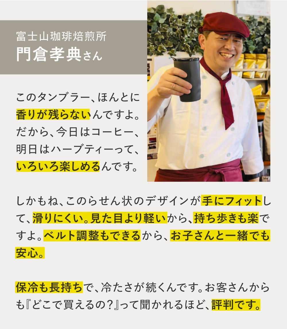 珈琲のプロ推薦、飲み物本来のピュアな味わいを追求した至高の携帯タンブラー