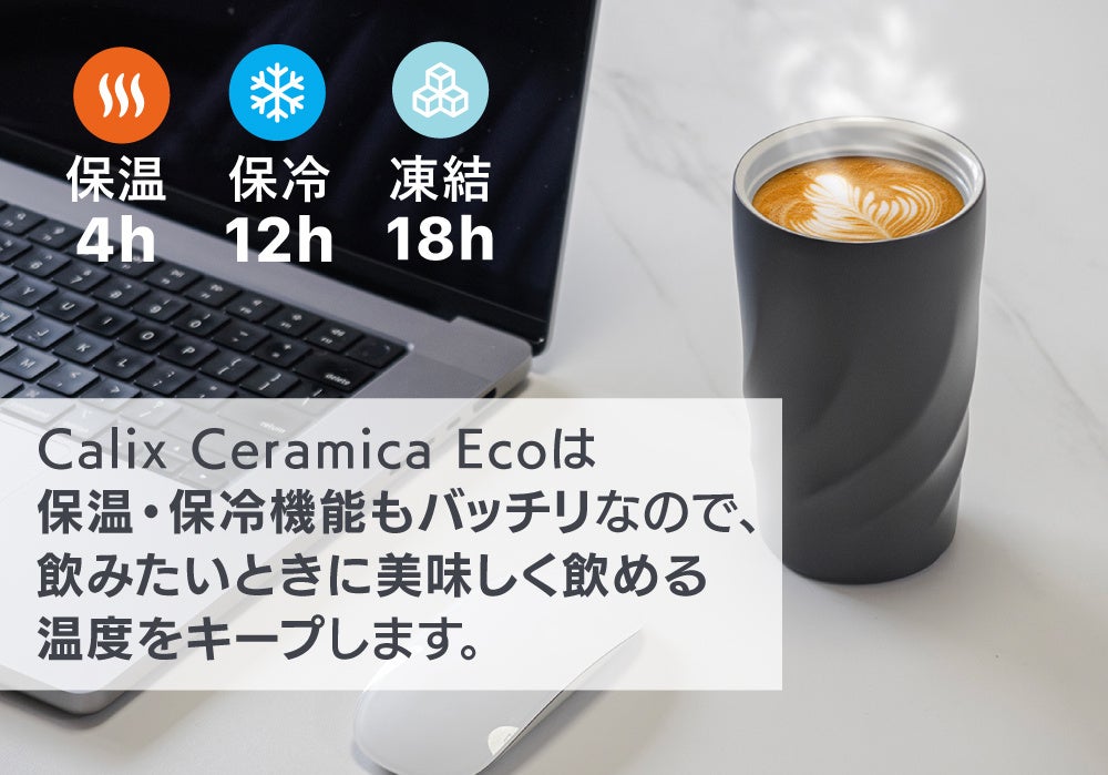 A・Family 株式会社は、現在の様々な生活シーンにおいて登場するタンブラーの質にこだわり、お好みの飲み物のピュアな味わいを通し至高のリラックスタイムを提供するために、優れたセラミックコーティング、保温・保冷性能、人間工学に基づいた持ちやすく美しいデザインを兼ね備えた、新感覚の保温・保冷タンブラー「Calix Ceramica Eco」の販売を開始致します。