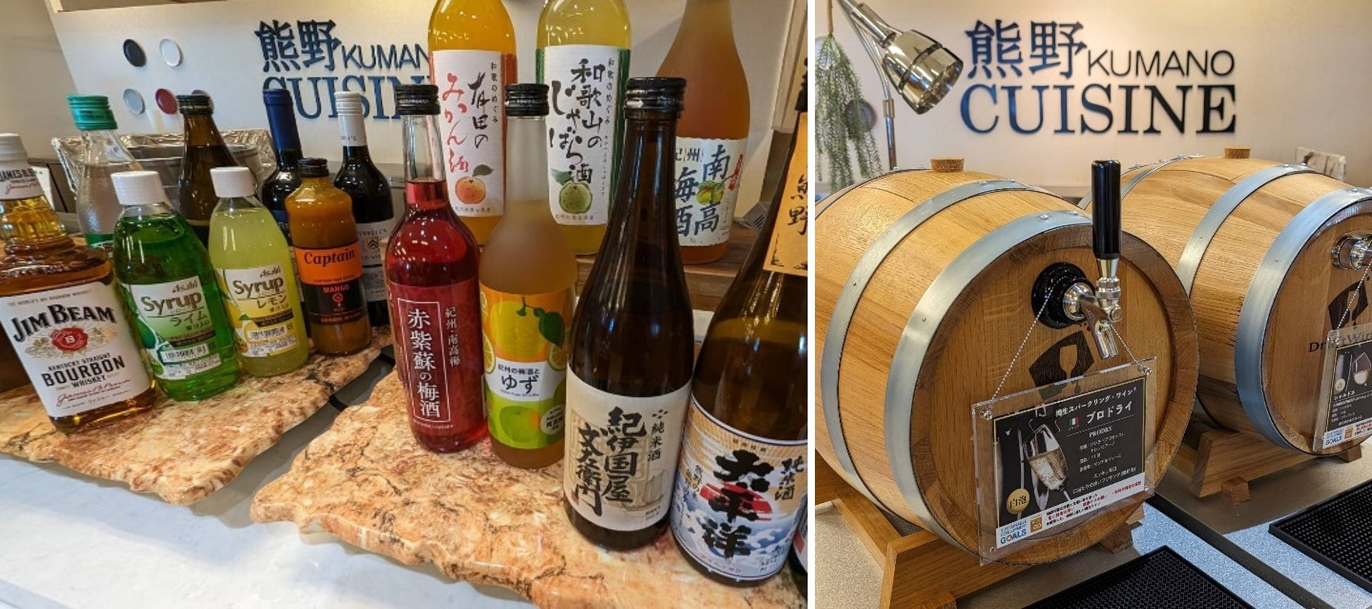 ※対象となるアルコールは生ビール、和歌山県の地酒、焼酎(麦・芋)、ワイン(赤・白)、ウィスキー、スパークリングワイン、果実酒30種類以上などをご用意しております。