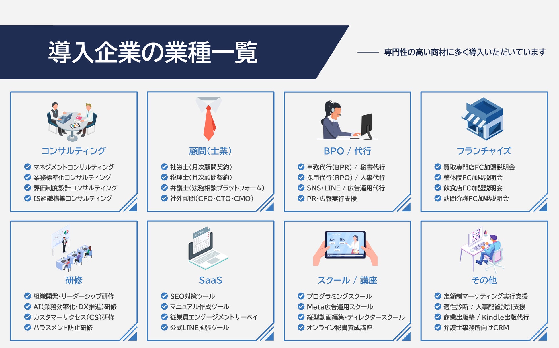 一方で、BtoCサービスについては実績が少なく、相性が良いとは言えない点もご留意ください。