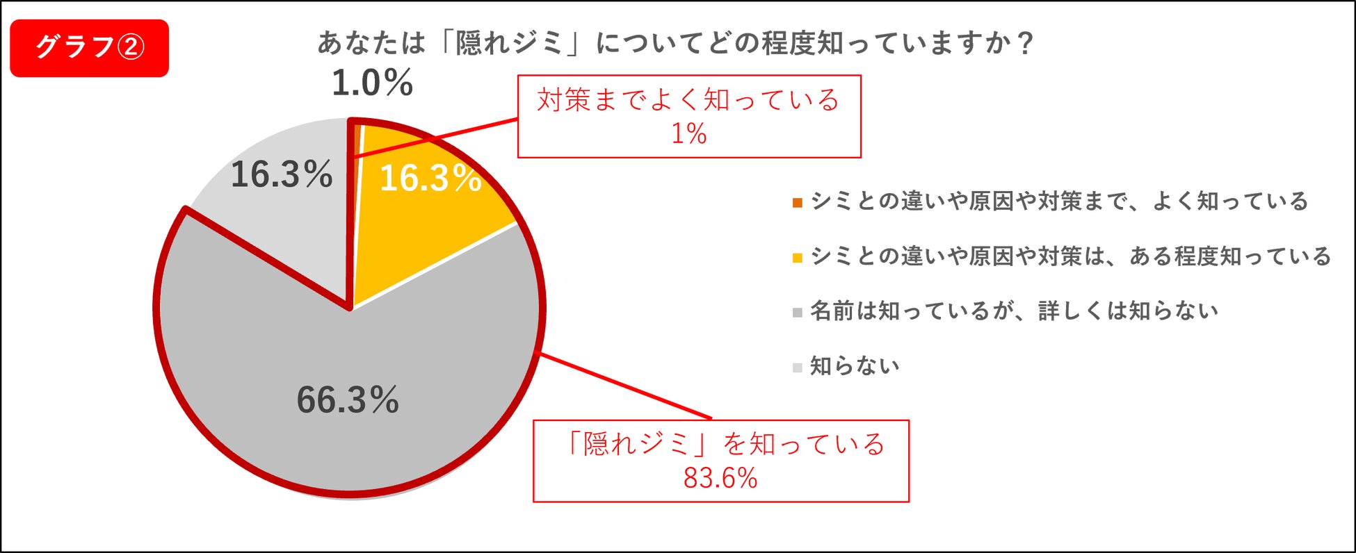 2. 「隠れジミ」を知っているのは83.6%、対策までよく知っているのはたったの1%