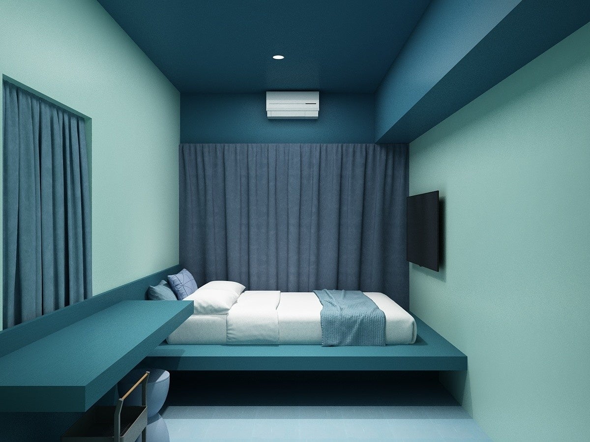 客室は全48室、客室ごとにカラーの異なる8タイプ。壁や床、椅子などがルームカラーそれぞれのコンセプトカラーに染まっており、お好きなカラーに囲まれた宿泊をお楽しみいただけます。