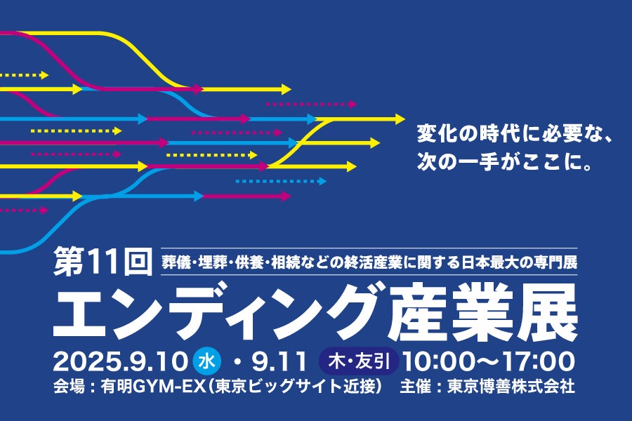 エンディング産業展を主催・運営する広済堂グループの東京博善株式会社(本社:東京都港区、代表取締役社長 野口龍馬、以下「東京博善」)は、2025年9月10日(水)・9月11日(木)の2日間、有明GYM-EX(ジメックス)にて終活業界最大規模のイベント「エンディング産業展 2025」を開催します。