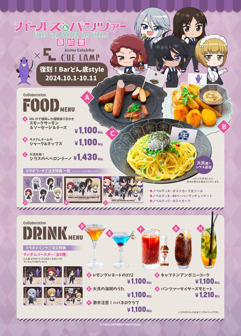 アニメ制作会社パッショーネ、ハヤブサフィルムが共同運営している『Anime Cafe&Bar CUE LAMP』は、10月1日(火)より「ガールズ&パンツァー 」とのコラボメニューを再販いたします。
