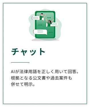 「Legal Knowledge」の特長は、公的な文献と利用者自身のデータベースを基にした高い回答精度を実現する他、AIの回答の採用可否を利用者自身で判断する(※)ことで、利用者自身がAIの精度を継続的に向上させ、パーソナライズさせていくことができる点です。