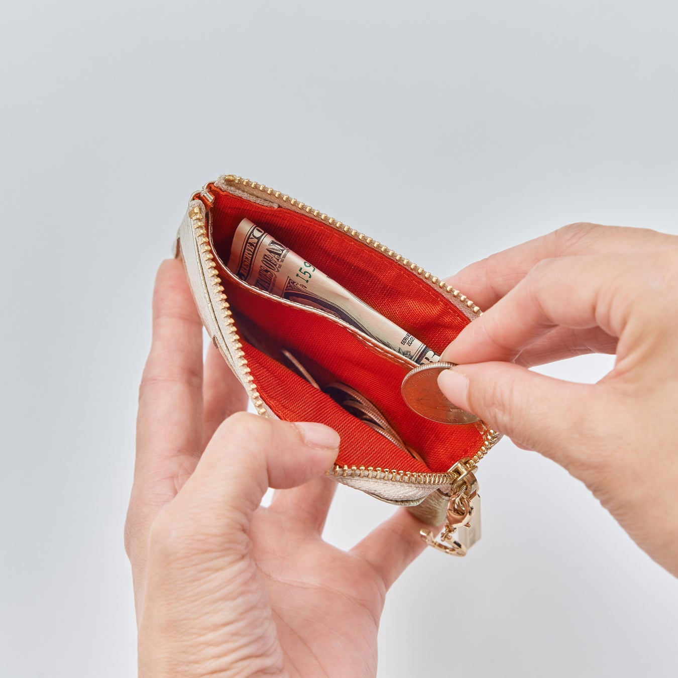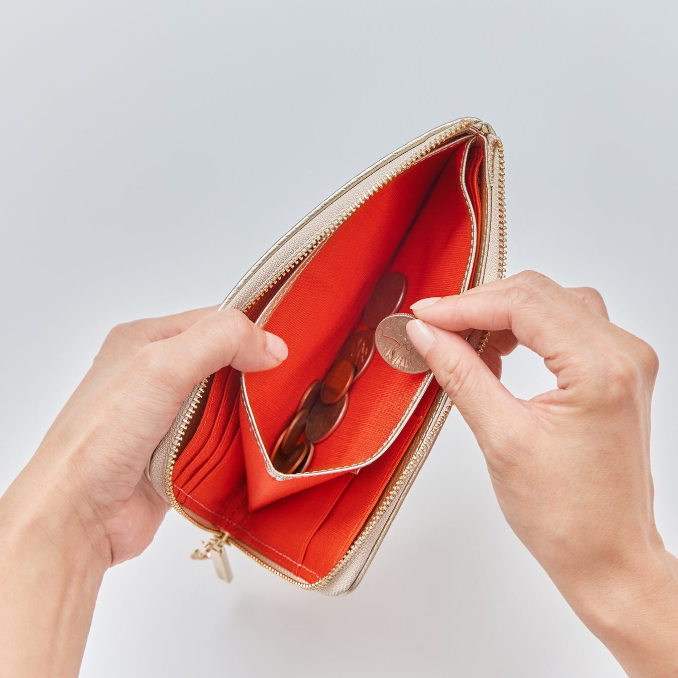 真赤ではなく朱赤=ヴァーミリオンに近い裏地は、見た瞬間に心を晴れやかにするカラー。生命力を象徴し、古代から「守護と勝利」の色として知られています。頑張る力を宿し、魔除けや浄化の意味も。英語表記vermillionの“million”は金運アップを連想させます。