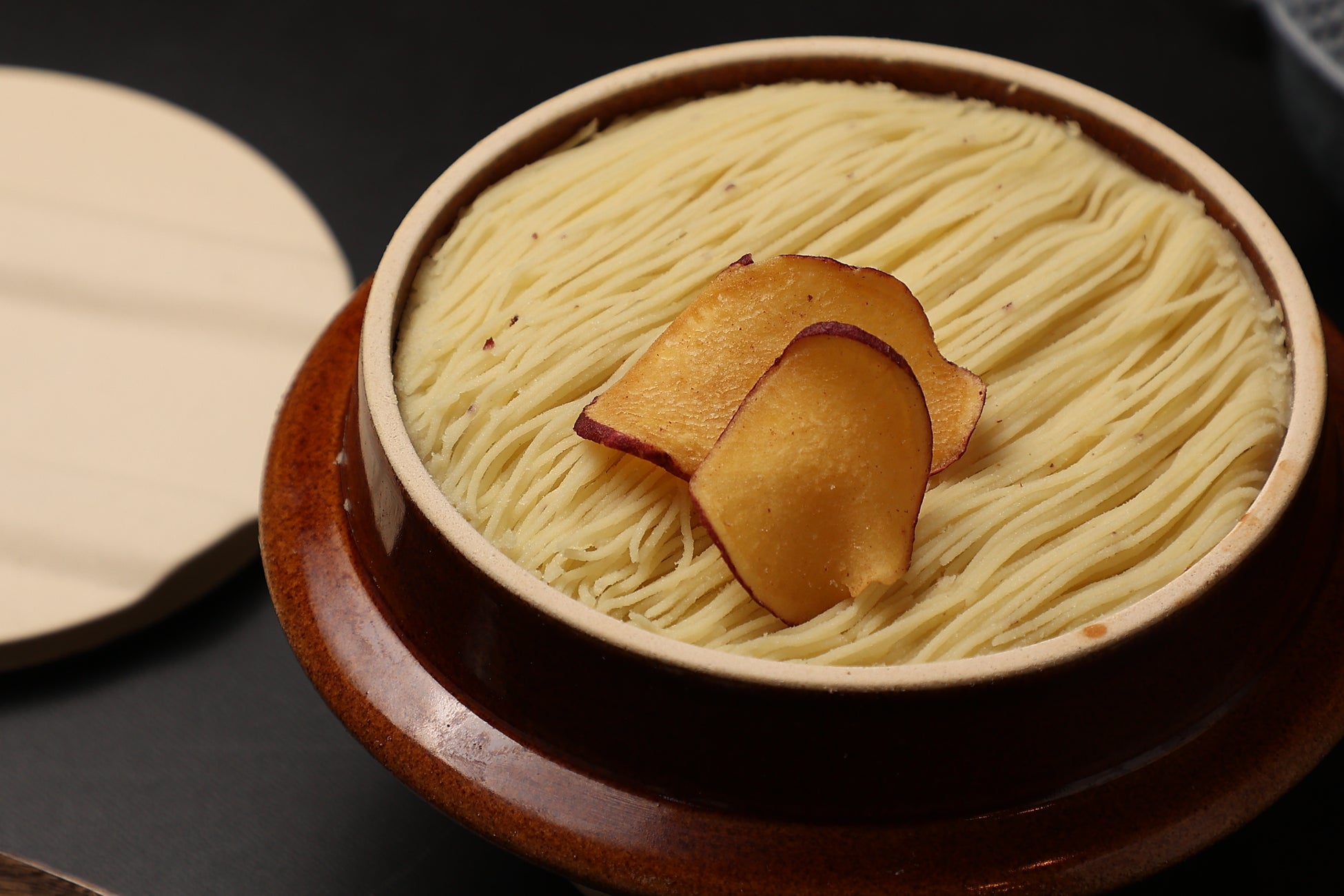「お菓子ないも」は、いも栗カボチャが誇る唯一無二のスイーツです。和の素材を贅沢に使い、さらに温めて楽しむという革新的なスタイルで提供する新感覚モンブラン。従来の冷たいスイーツとは異なり、温かさとともに素材の旨味が引き立ち、心も体もほっこりと癒やされる一品です。
